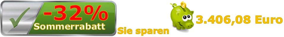 Bei diesem hier angeführten Aktionspaket um nur 6.990,00 Euro inkl. 20 % Mwst. handelt es sich um begrenzte Stückzahlen und es ist möglich, dass Ihr gewünschtes Aktionspaket zu diesem Preis bereits ausverkauft ist.