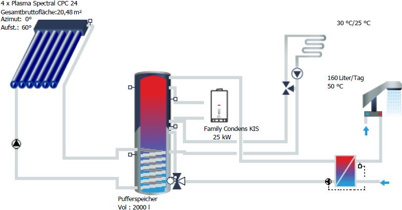 Die Berechnungen wurden mit dem von der Bafa zertifizierten und zur Förderung von Solaranlagen anerkannten Simulationsprogramm für thermische Solaranlagen T-SOL 2016 (R2) durchgeführt. Die Ergebnisse sind durch eine mathematische Modellrechnung mit einer variablen Zeitschrittweite von max. 6 Minuten ermittelt worden. Die tatsächlichen Erträge können aufgrund von Schwankungen des Wetters, des Verbrauchs und anderen Faktoren davon abweichen.